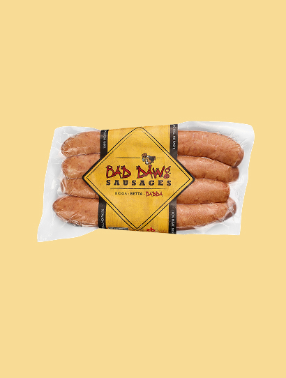 Products: Bad Dawg Original Sausages and Bad Dawg Jerk Sausages,
